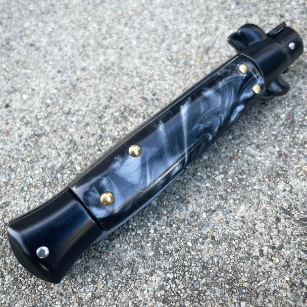8,75 Zoll schwarzes italienisches Stiletto-Taschenmesser mit Schalter, schwarze Perle