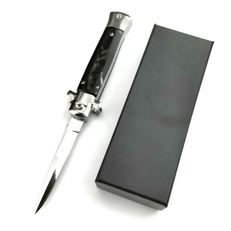 8,75 Zoll schwarzes italienisches Stiletto-Taschenmesser mit Schalter, schwarze Perle