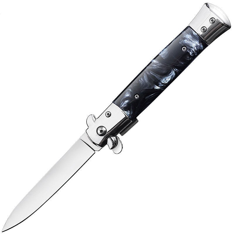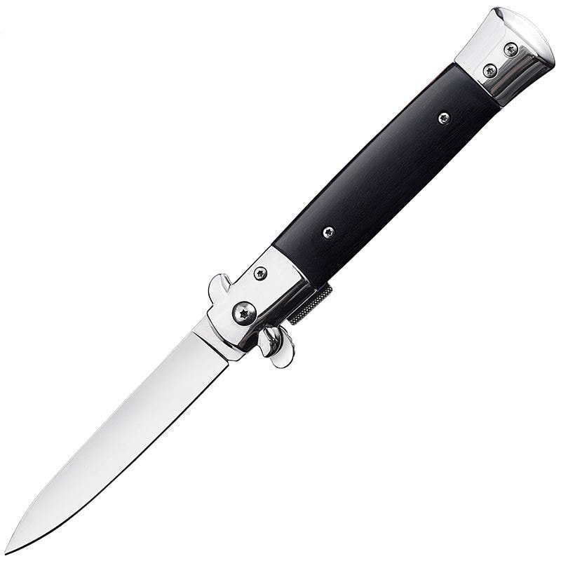 8,75 Zoll schwarzes italienisches Stiletto-Taschenmesser mit Schalter, schwarze Perle